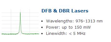 分布式反馈激光器(DFB)和分布式布拉格反射激光器(DBR)是光谱谱线很窄(线宽小于5MHz,单频激光器),边模抑制比(SMSR)˃ 40dB 光源。